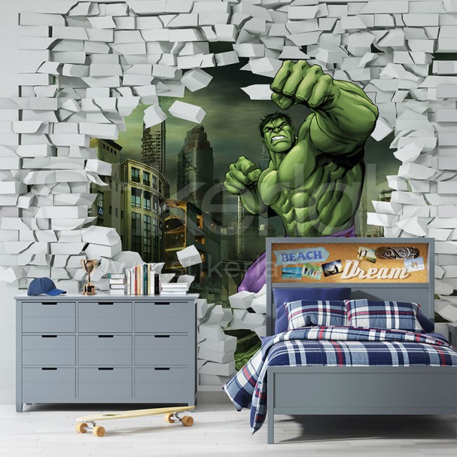 Atraktivni 3D tapet za dečiju sobu sa motivom Hulka obradovaće svakog mališana.