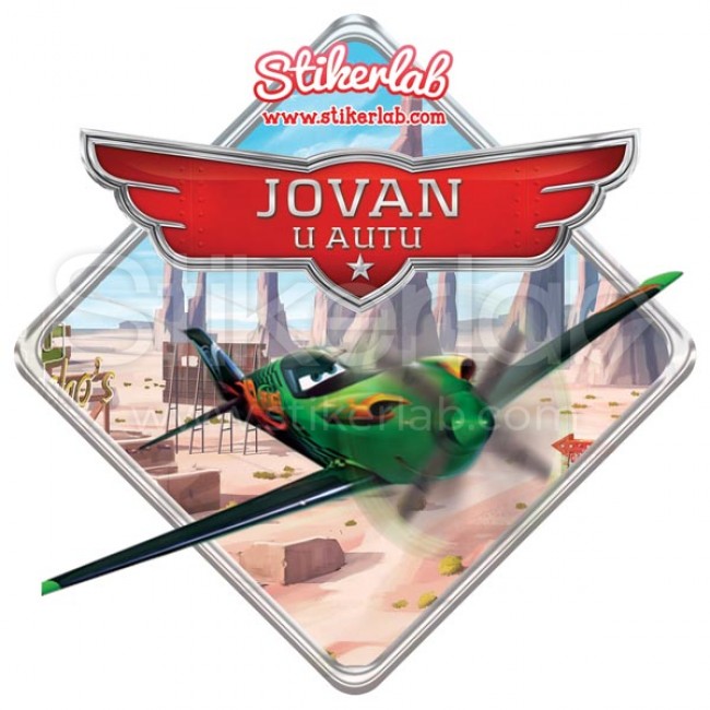 Prelepi stiker-nalepnica za automobil "Beba u autu" sa motivom Planes i imenom Vaseg malisana.